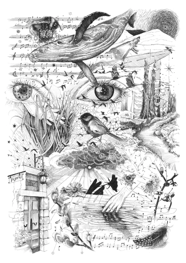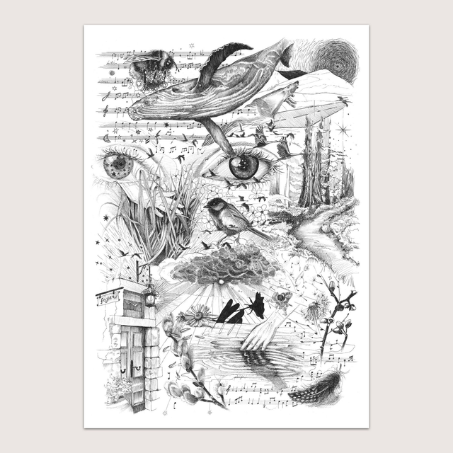 Dessin de Pao Rover, fait au stylo technique sur papier d'art 250g.